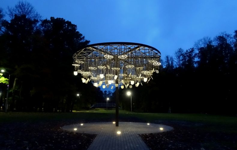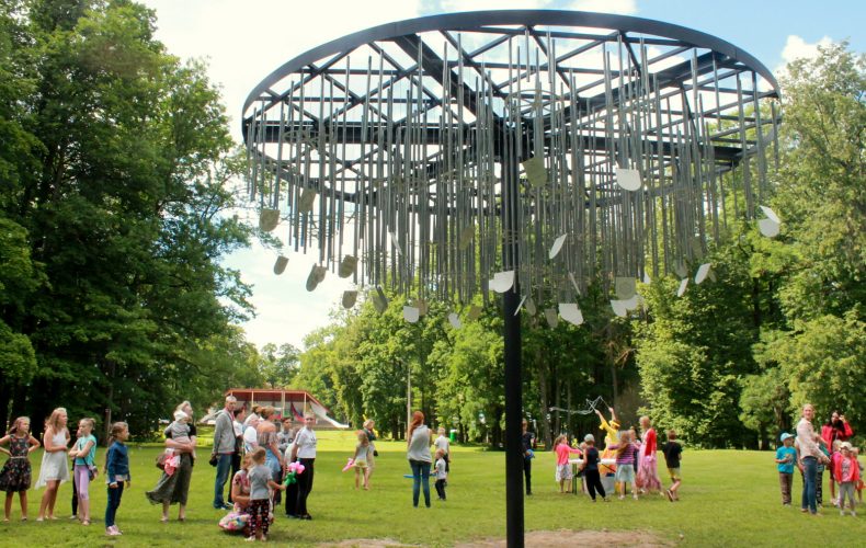 . Vėjo varpų medį sudaro 324 vėjo varpeliai su visų Latgalos regionų herbais, o muziką skleidžia 48 vėjo varpeliai. Didžiausias pasaulyje vėjo gongų ansamblis buvo įrengtas Balvuose. Visame pasaulyje yra vėjo varpelių su ilgesniais ir storesnio skersmens stulpais, tačiau niekur nėra tiek daug vėjo varpelių vienoje vietoje.